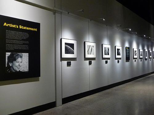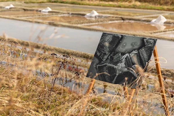 below- on easels, photomicrographs of ocean drops 250x at the Salt Marshes, Écomusée du Marais Salant, Isle of Re, France